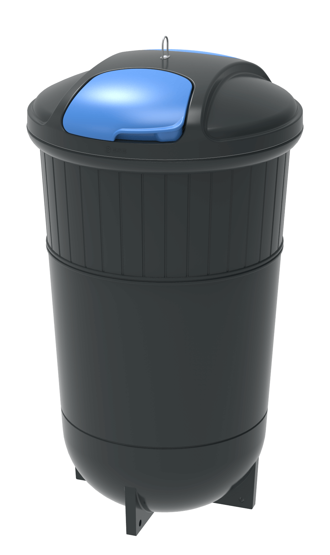 The lid and container are manufactured using a rotational molding process. The robust upper edge of the container supports the emptying system consisting of the lid, crane pick-up and bag system. The lid protects against rainwater and it simplifies the reinsertion of the waste and recyclables unit after emptying.